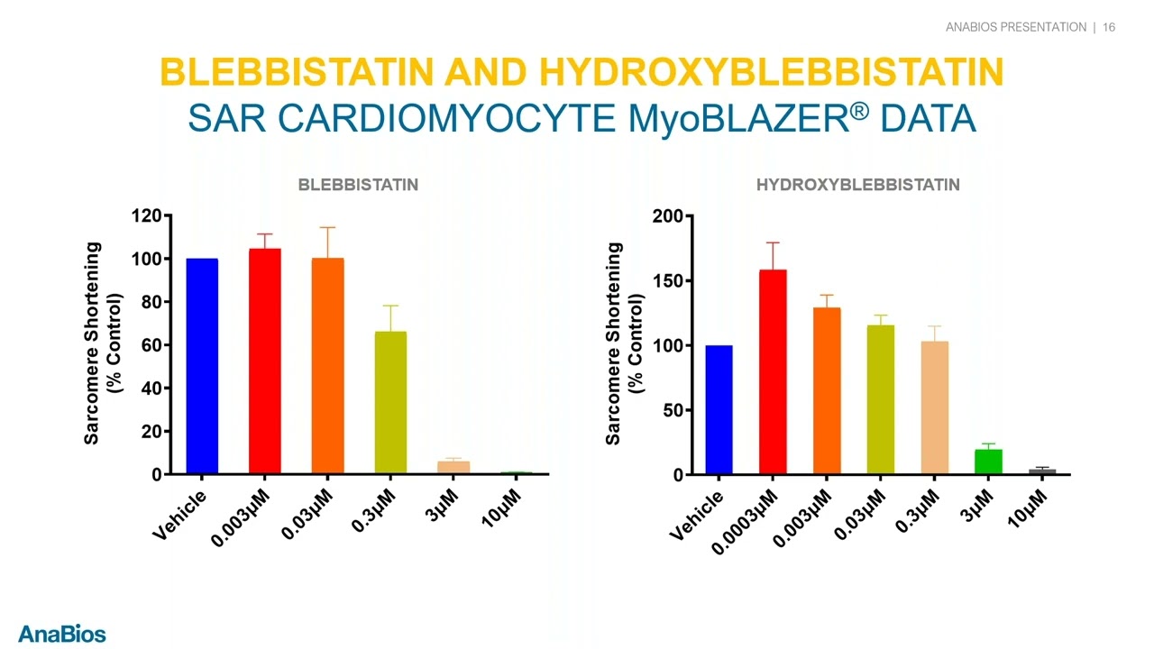 Figure 3. Detecting Positive & Negative Inotropy Using Primary Human Cardiomyocytes. The calcium channel blocker ver. (left), which is known to reduce cardiac contractility through Ca2+ channel block, elicits negative inotropy while milr. (middle) and isop. (right) elicit positive inotropic effects through the phosphodiesterase and b-adrenergic systems, respectively.